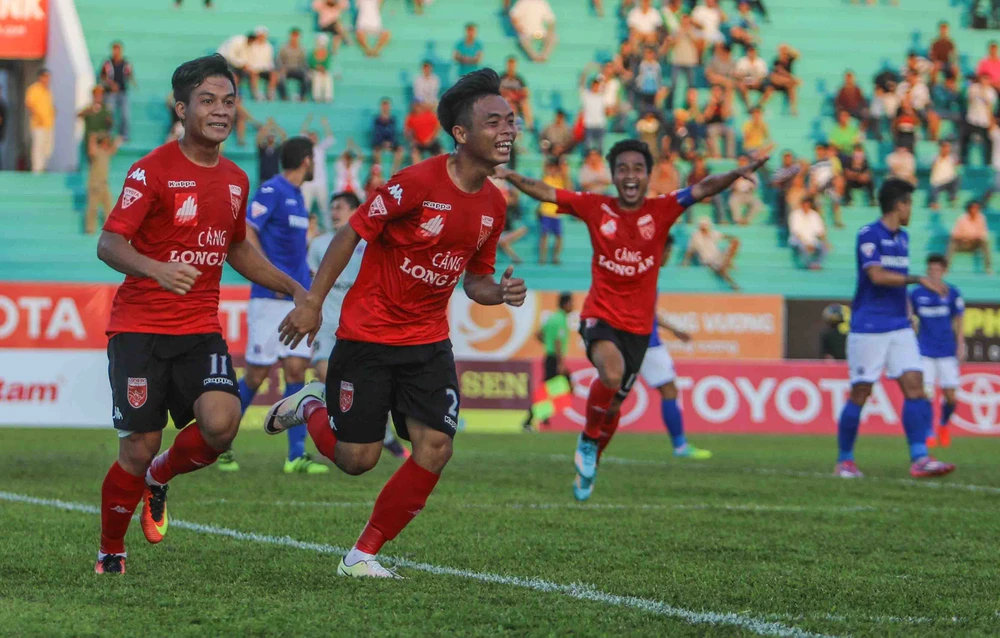 Ngay phút 20, trong một pha tấn công biên, bóng được câu chìm vào trung lộ, Hà Vũ Em lao vào dứt điểm mở tỉ số 1-0 cho Long An. Một bàn thắng mẫu mực của Long An, có được thuận lợi cùng sau đó là hàng loạt cơ hội nhưng đội bóng miền Tây lại bỏ qua. Điều đáng nói là đội đất mỏ dù thua bàn nhưng họ chơi không quá quyết liệt.