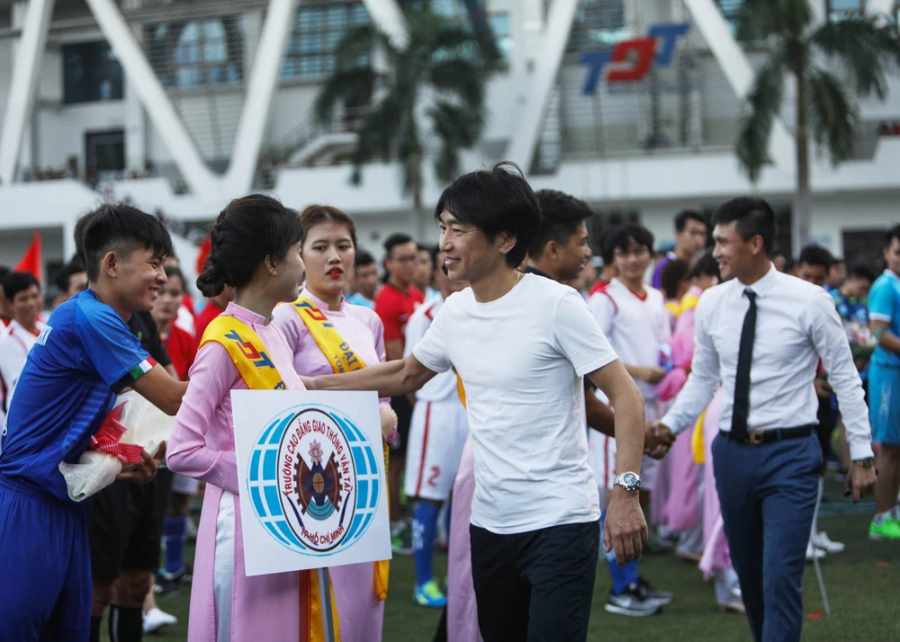 HLV Miura sáng 5-1 mới nhậm chức tại CLB TP.HCM cũng nhanh chóng đến sân để chúc mừng giải bóng đá giành cho sinh viên thành công tốt đẹp.