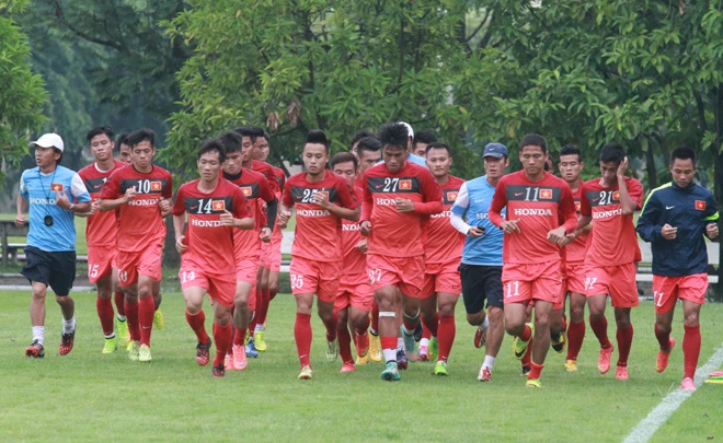 Ngày hôm qua 5/11, sau chuyến tập huấn tại Bình Dương và TP.HCM, thầy trò HLV Miura đã có mặt tại Hà Nội để bước vào giai đoạn chuẩn bị nước rút cho AFF Cup 2014. Sau một đêm nghỉ ngơi, vào sáng nay các tuyển thủ đã có buổi tập đầu tiên tại Hà Nội dưới thời tiết mưa phùn, gió lạnh cùng với giáo án và sự theo dõi sát sao của chuyên gia thể lực người Nhật Bản Fujimoto Heroo.