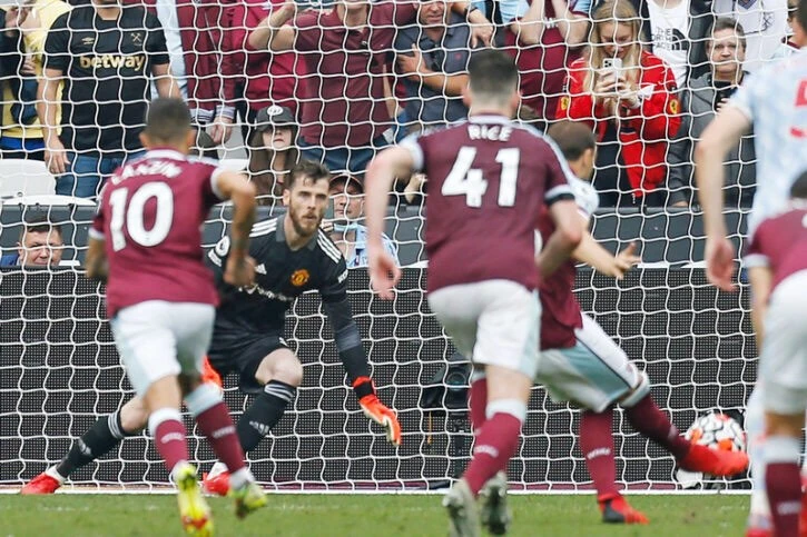 Ở phút bù giờ thứ 3, West Ham được hưởng quả phạt đền sau tình huống để bóng chạm tay của Luke Shaw. HLV Moyes tung Mark Noble vào sân để đá quả 11m quyết định. Tuy nhiên, tiền vệ kỳ cựu của West Ham không thể đánh bại David de Gea với cú đặt lòng thiếu độ hiểm hóc, khiến West Ham thua chung cuộc 1-2.