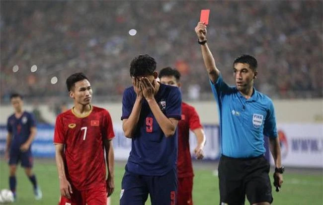 Supachai dính thẻ đỏ khi đánh trung vệ Đình Trọng ở vòng loại U-23 châu Á.