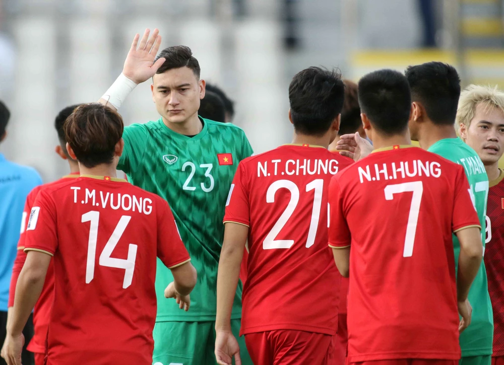Thủ môn Văn Lâm và đồng đội quyết thắng Jordan để mang lại niềm hạnh phúc cho người yêu bóng đá Việt Nam. Ảnh: ANH HỮU