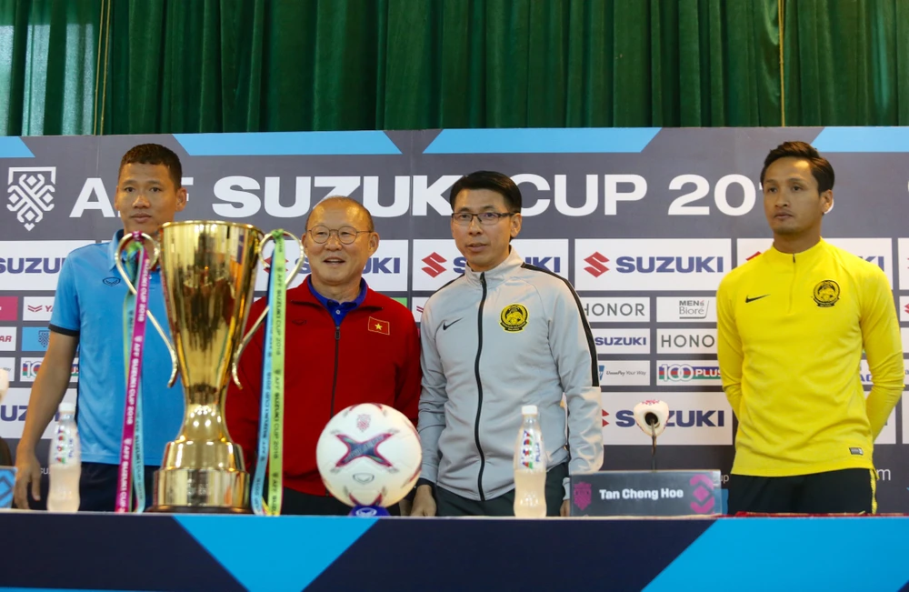 HLV Park Hang-seo tự tin sẽ qua mặt đồng nghiệp Tan Cheng Hoe. Ảnh: NGỌC DUNG