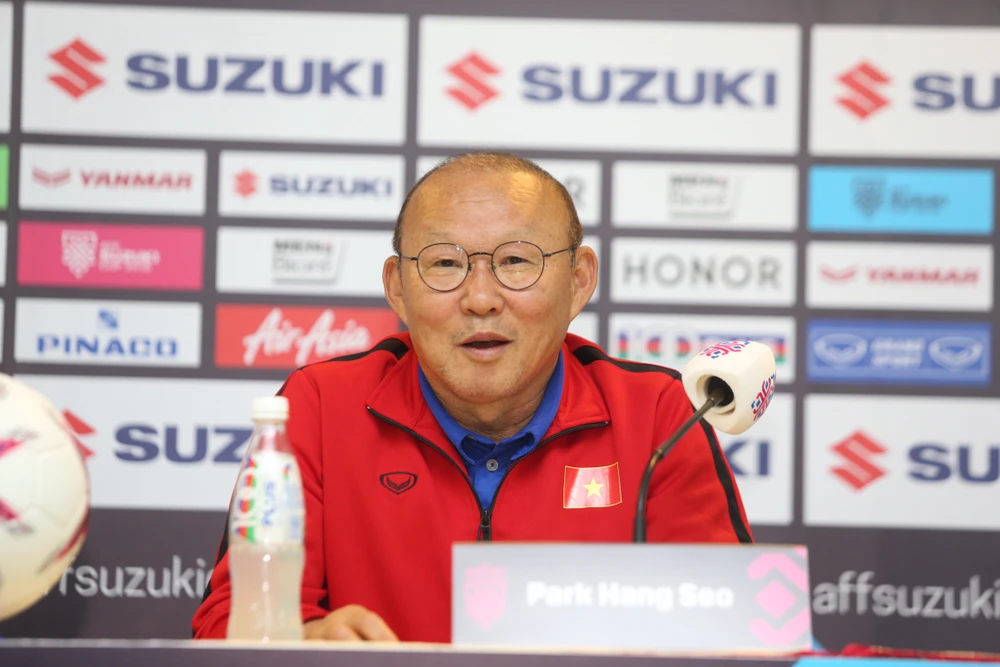 HLV Park Hang-seo nói rõ khao khát của mình: “Trong một năm qua, chúng tôi đã chơi nhiều giải đấu lớn nhưng chưa một lần vô địch. Điều tôi mong muốn là cùng đội tuyển Việt Nam đoạt cúp. Chúng tôi sẽ dốc toàn lực ra chơi để đền đáp tấm lòng của người hâm mộ sau 10 năm dài chờ đợi chức vô địch AFF lần thứ hai”.