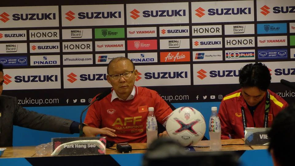 Thật lạ lùng ông Park Hang-seo chỉ ở trên sân khoảng 10 phút sau khi tan trận đã lặng lẽ một mình đi vào đường hầm. Cho đến cuộc họp báo sau đó, trong những tràng pháo tay rộn rã chúc mừng thầy trò ông lên đỉnh Đông Nam Á, chợt thấy ông Park ngấn lệ với đôi mắt đỏ hoe.