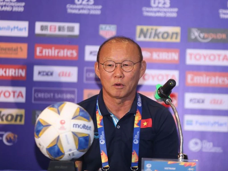 HLV Park Hang-seo trong buổi họp báo trận U-23 Việt Nam - U-23 UAE. Ảnh: TRÂM ANH