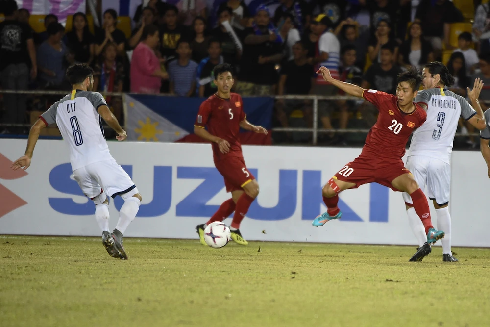 Phan Văn Đức (20) là cầu thủ xuất sắc nhất trận thắng sân khách Philippines 2-1. Ảnh: TRÂM ANH