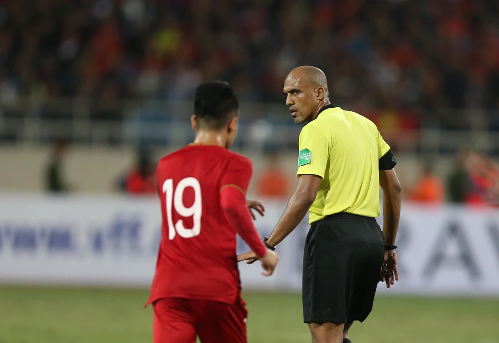 Trọng tài Ahmed Al-Kaf người Oman gây ra nhiều tranh cãi trong trận cầu siêu kinh điển Việt Nam - Thái Lan. Ảnh: NGỌC DUNG.