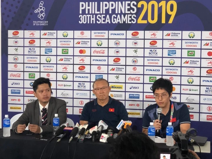 HLV Park Hang-seo trong buổi họp báo sau trận đấu. Ảnh: CÔNG TUẤN