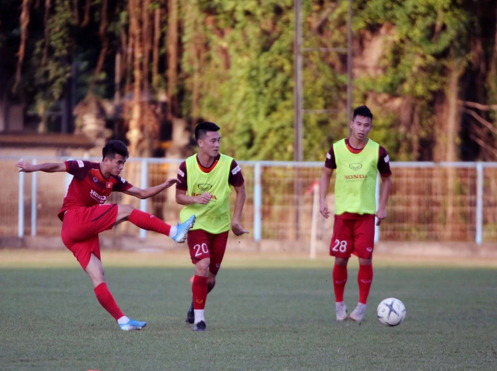 Tại buổi tập đầu tiên trên đấu khách, ông thầy người Hàn Quốc chia đội thành hai nhóm. Các cầu thủ đá chính trong trận thắng Malaysia 1-0 chỉ tập các bài thư giãn gân cốt và vận động hồi phục. Còn nhóm cầu thủ còn lại tập với khối lượng nặng hơn, đồng thời ban huấn luyện cũng dành phần lớn thời gian để củng cố thêm về chiến thuật cho họ.