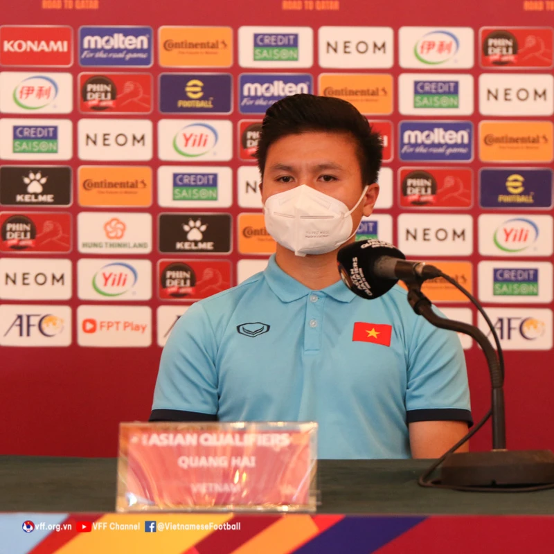 Quang Hải hứa sẽ nỗ lực hết sức để giúp Việt Nam thắng Trung Quốc. ẢNH: VFF