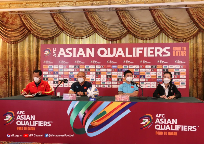 Toàn cảnh buổi họp báo của tuyển Việt Nam. ẢNH: VFF