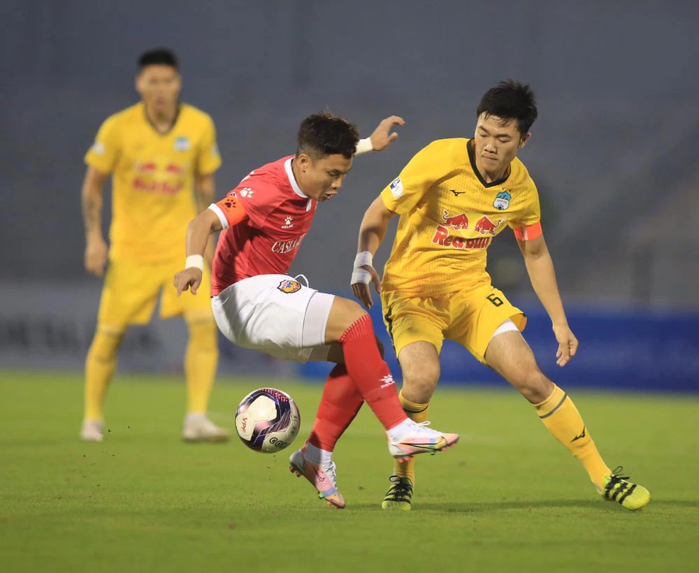 Hà Tĩnh (áo hồng) chơi rất hay ở trận tiếp HA Gia Lai hòa 0-0. Ảnh: VPF