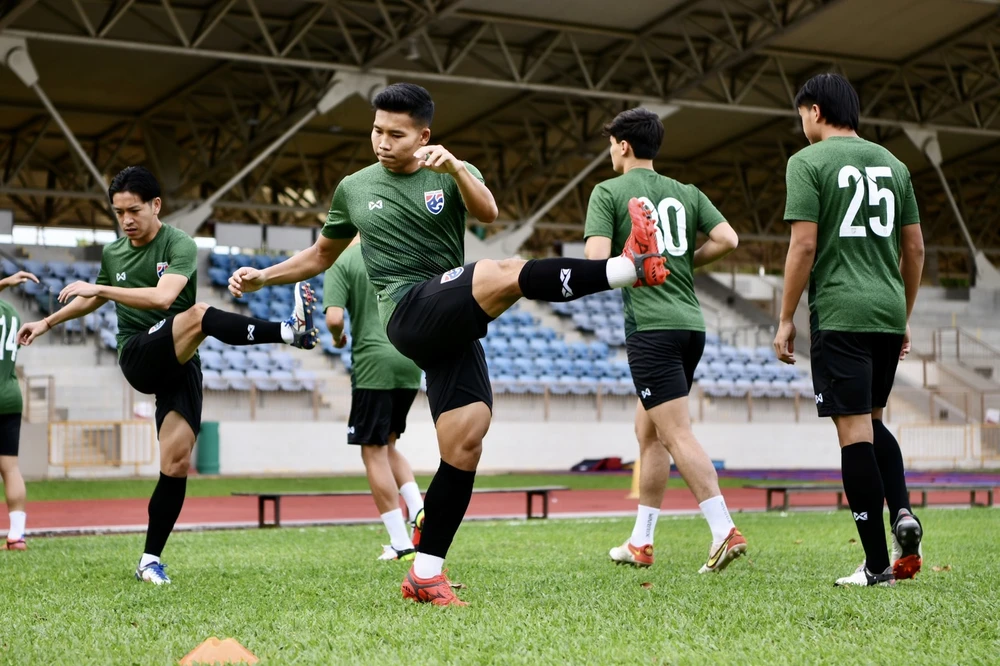 Đội tuyển Thái Lan tập luyện chuẩn bị cho trận gặp Đông Timor. ẢNH: SIAM