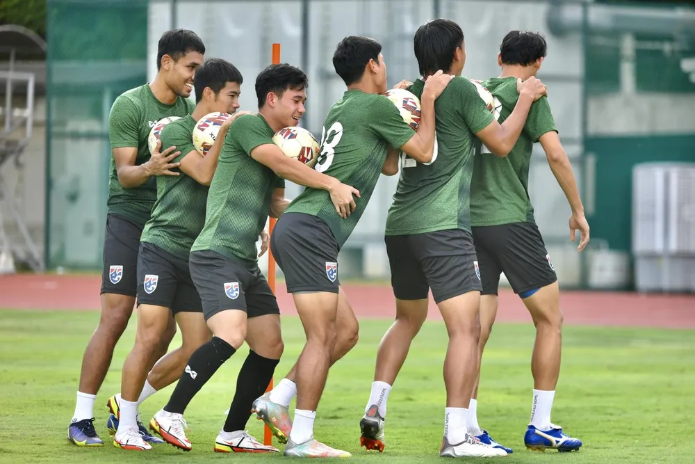 Các cầu thủ Thái Lan tập luyện chuẩn bị cho trận đấu với Việt Nam trong không khí vui vè. ẢNH: BANGKOK POST