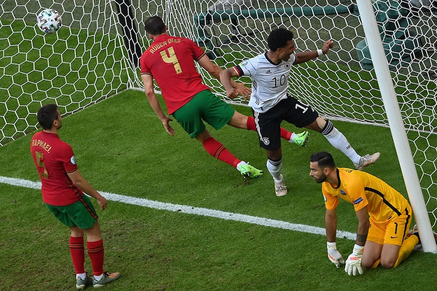Một Bồ Đào Nha hừng hực khí thế khi đánh bại chủ nhà Hungary 3-0 rồi hành quân sang Đức trong thế kèo trên nhưng vỡ vụn với tỉ số không tưởng và một thế trận bị ép sân toàn diện. Hàng công Đức dồn hàng thủ Bồ Đào Nha và cảnh tự sát với hai bàn đá phản lưới nhà.