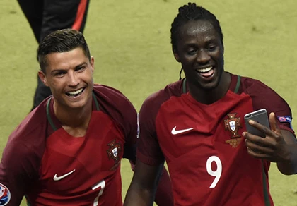 "Con vịt xấu xí" Eder tự sướng cùng Ronaldo.