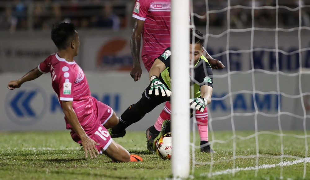 Thắng 3-1 nhưng Sài Gòn FC như bị đắm chìm trong “ma trận” trước lối chơi “đập nhả” bóng ngắn mà HA Gia Lai tạo ra.