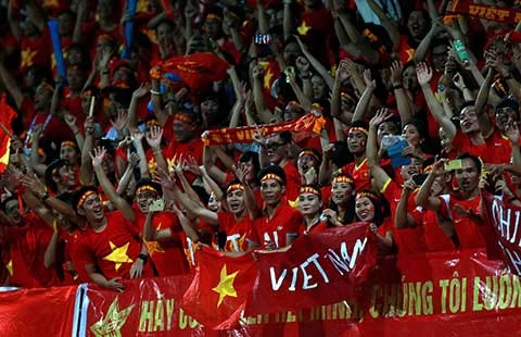 Cổ động viên Việt Nam luôn sát cánh bên thầy trò HLV Miura. Ảnh: QUANG THẮNG