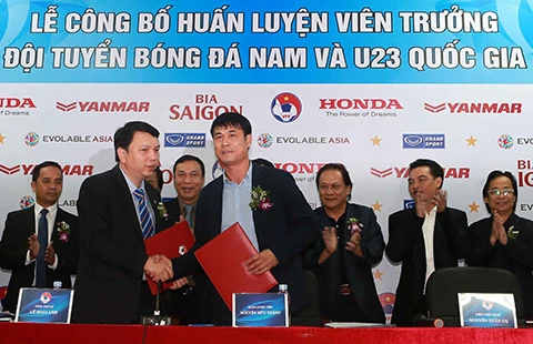 HLV Hữu Thắng ngày ký hợp đồng mở ra những thay đổi lớn trong lịch sử các HLV nội. Ảnh: QUANG THẮNG