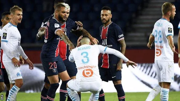 Đây là trận đấu có đến 5 thẻ đỏ, trong đó đội khách PSG có ba thẻ gồm Neymar, Jordan Amavi và Dario Benedetto.
