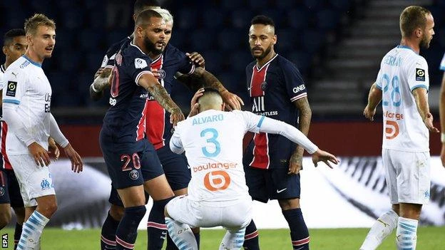 Neymar đã có va chạm với hậu vệ Alvaro Gonzalez sau khi cầu thủ Marseille này có những lời nói và biểu hiện của sự phân biệt chủng tộc ở phút 99.