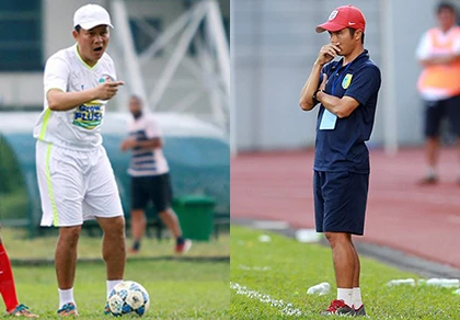 HLV Quốc Tuấn (trái) và HLV Minh Đức không ngại công kích nhau. ẢNh: XUÂN HUY