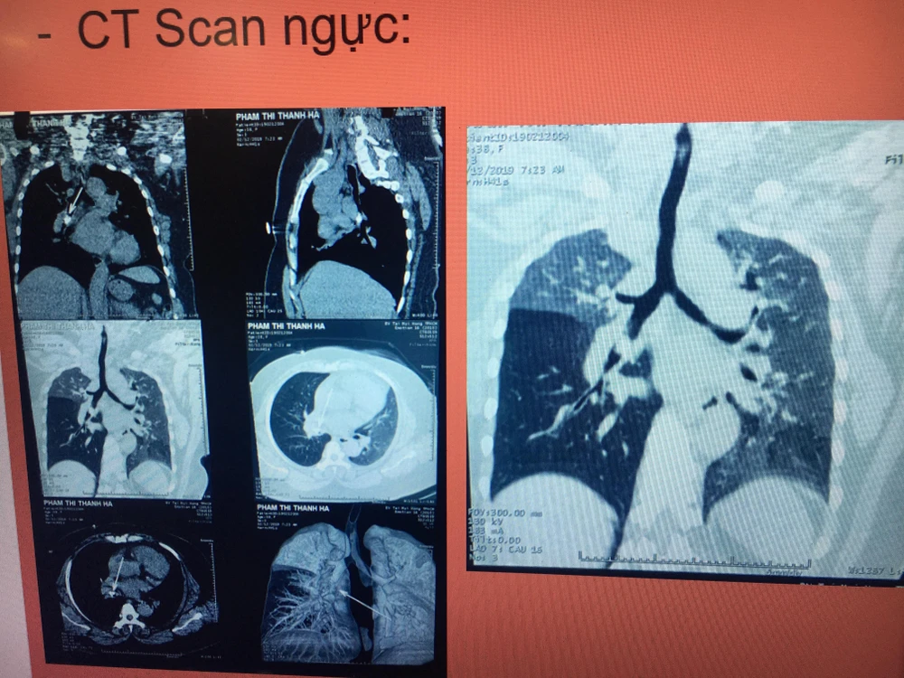 Sau đó, bệnh nhân tiếp tục lên một BV chuyên khoa lao ở TP.HCM, cũng được chẩn đoán viêm phế quản mãn tính, cho thuốc về uống nhưng không đỡ bệnh. Về nhà, bệnh nhân tự mua thuốc đông y, tây y uống vẫn không khỏi, ngày càng tăng cân. Các kết quả chụp phim phổi không có gì bất thường.