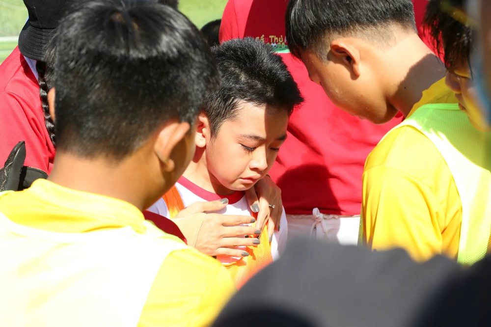 Hồ Bích Trâm an ủi cầu thủ nhí cầu thủ nhí Tiêu Gia Hưng. Ảnh: BEE