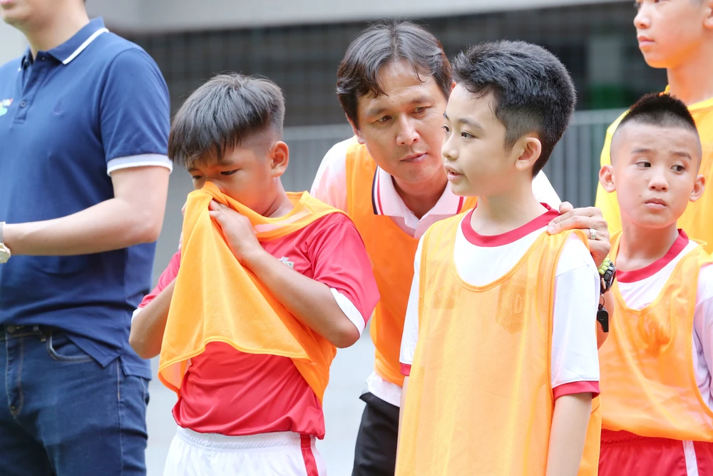 Hồ Bích Trâm không nỡ chứng kiến các cầu thủ nhí phải dừng chân quá sớm. Ảnh: CTCC