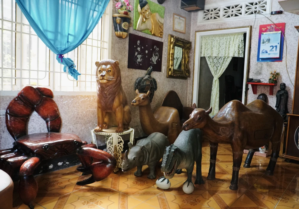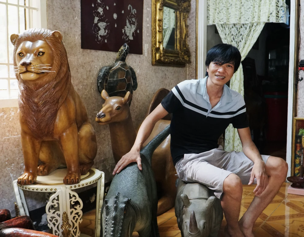 Tính đến nay, anh đã cho ra đời hàng trăm tác phẩm độc đáo, lạ mắt, đa dạng kiểu dáng, kích thước từ bàn ghế đến tượng phật, các con vật trang trí. Tác phẩm đầu tiên anh tạo hình là một con hà mã. Anh chia sẻ, khi đó kinh nghiệm chế tác chưa có nhiều, gần hoàn thành sản phẩm thì rơi cả đầu con vật xuống đất vì không được cố định kỹ lưỡng. Anh phải tìm tòi, nghiên cứu cách tạo độ cứng cho khung sườn để làm lại và thành công.