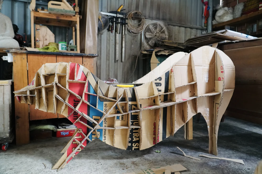 Từ 4 năm trước, khi đang làm việc tại một xưởng gỗ, anh Nguyễn Hoàng Hải có cơ hội tiếp cận những bộ bàn ghế làm từ bìa carton của một người đàn ông Pháp. Tò mò, thích thú với cách đắp bột giấy, anh bắt đầu đam mê sáng tạo nên những sản phẩm cho riêng mình.