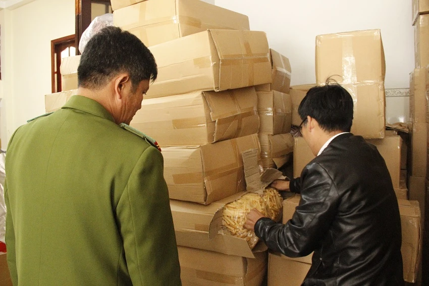 Quá trình kiểm tra, ông Lĩnh chưa xuất trình được giấy tờ chứng minh nguồn gốc số hàng hóa trên. Mặt khác, ông Lĩnh kinh doanh mặt hàng thực phẩm, bắt buộc phải có giấy chứng nhận cơ sở đủ điều kiện an toàn thực phẩm nhưng hiện cơ sở của ông Lĩnh chưa có giấy này.