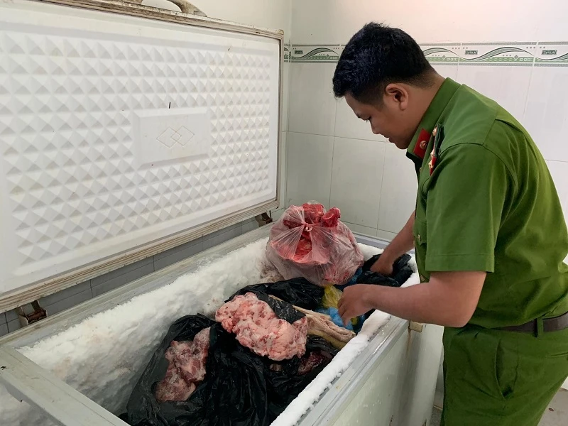 Trong tủ đông của cơ sở trên, lực lượng chức trách còn phát hiện có 106 kg thịt heo, 59,6 kg xương heo, 31 kg mỡ heo, 6 kg thịt thỏ và 15 kg thịt nhím không rõ nguồn gốc.