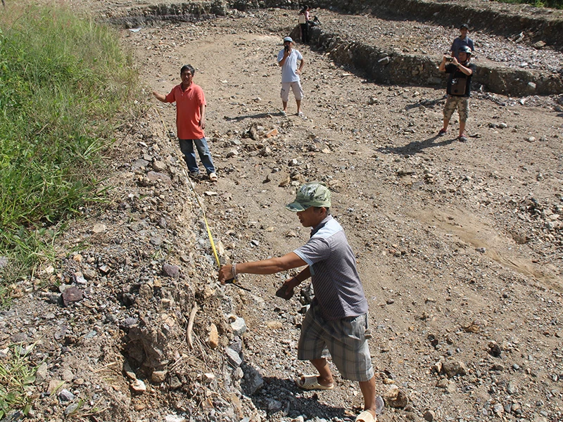 Người dân tự lên núi đo kiểm tra diện tích hồ bơi đang xây dựng trong dự án khu nhà ở cao cấp Hoàng Phú. Ảnh: TẤN LỘC