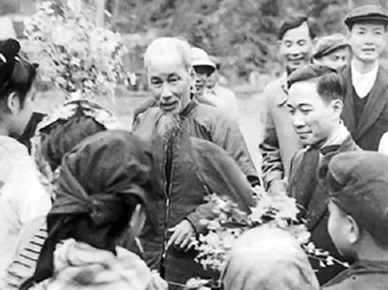 Bác Hồ về thăm lại Pác Bó Cao Bằng. Ảnh: Ban Quản lý Lăng