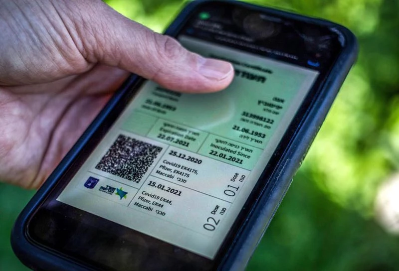 “Hộ chiếu vaccine” Israel cấp cho người đã được tiêm đủ hai liều vaccine COVID-19 của hãng Pfizer. Ảnh: Ilia Yefimovich/DPA/PA Images