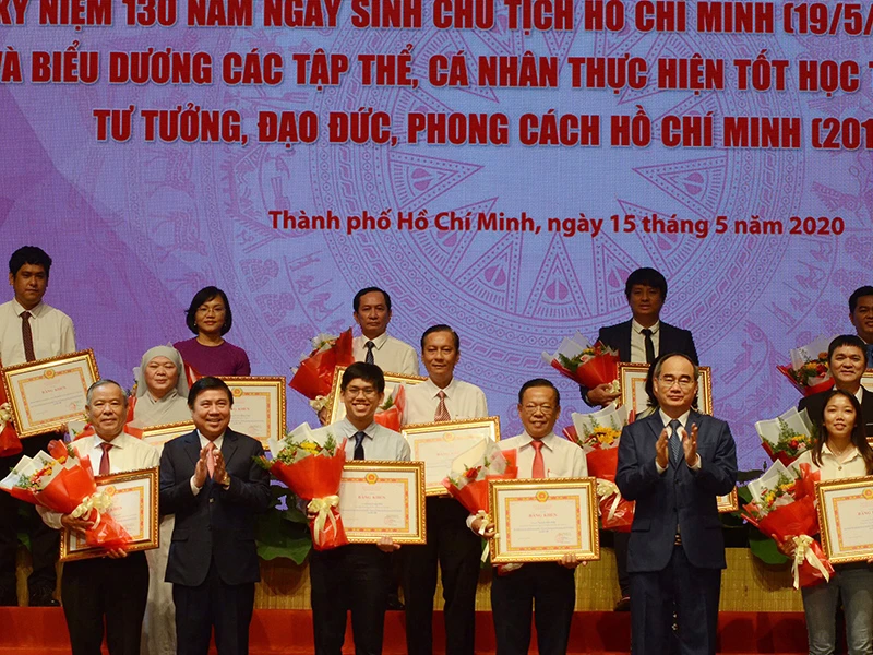 Tại lễ kỷ niệm này, Thành ủy TP.HCM đã tuyên dương 147 tập thể và 233 cá nhân thực hiện tốt học tập và làm theo tư tưởng, đạo đức, phong cách Hồ Chí Minh năm 2019-2020. “Những tập thể và cá nhân được tuyên dương là những tấm gương tiêu biểu ở nhiều lĩnh vực với những việc làm thiết thực và hết sức cụ thể vì cuộc sống của người dân” - Bí thư Thành ủy Nguyễn Thiện Nhân nói.