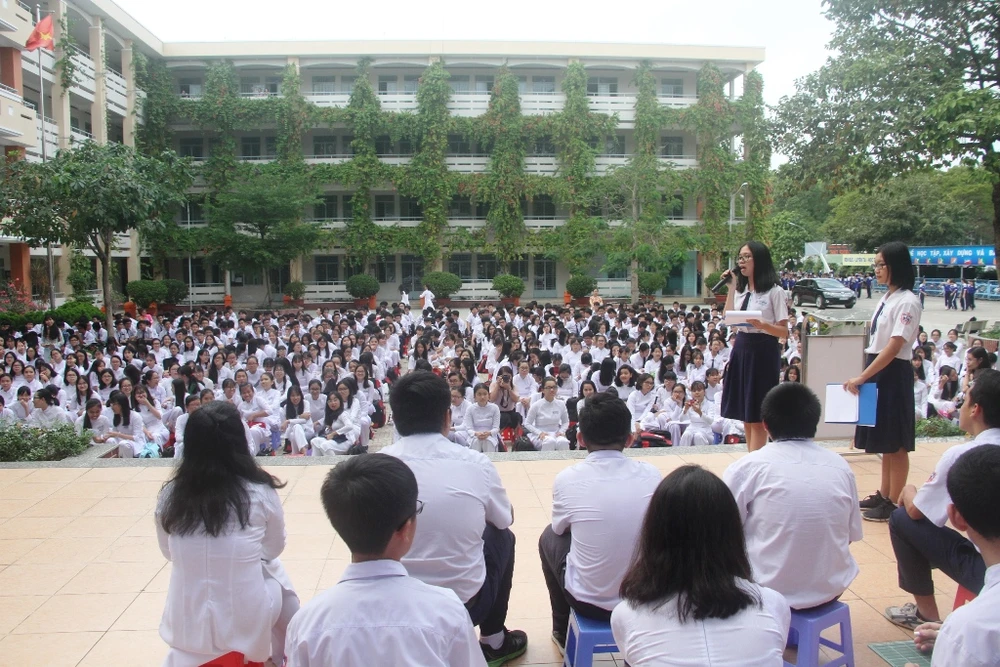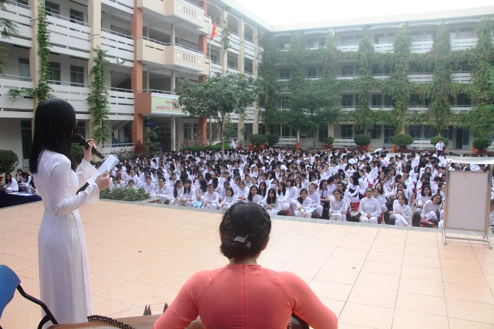 Học sinh của Trường THPT Phú Nhuận đều chăm chú lắng nghe