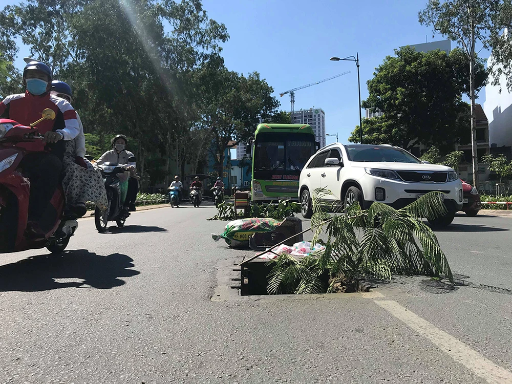 Do lo sợ có người không chú ý rơi xuống hố nên những người dân đã đặt một số nhánh cây và vật cảnh báo xung quanh miệng hố. Tuy nhiên, một số phương tiện vẫn gặp tình huống bất ngờ do hố này nằm ngay giữa đường.