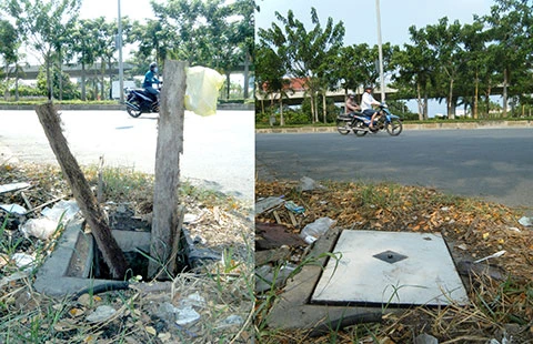 Người dân ở khu vực này cho biết nắp hố ga này bị mất đã lâu nhưng không thấy đơn vị chủ quản đến khắc phục nên họ phải dùng cây gỗ cột bao nylon cắm vào hố ga để cảnh báo. Ngay sau khi báo đăng, cơ quan chức năng đã lắp đặt nắp hố ga nói trên (ảnh).