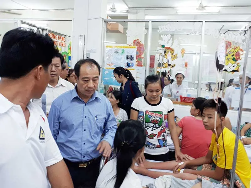 PGS-TS Trần Đắc Phu, Cục trưởng Cục Y tế dự phòng, kiểm tra tình hình dịch bệnh tại khoa Nhiễm, BV Nhi đồng 1. Ảnh: HP