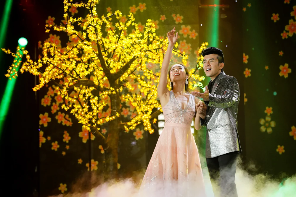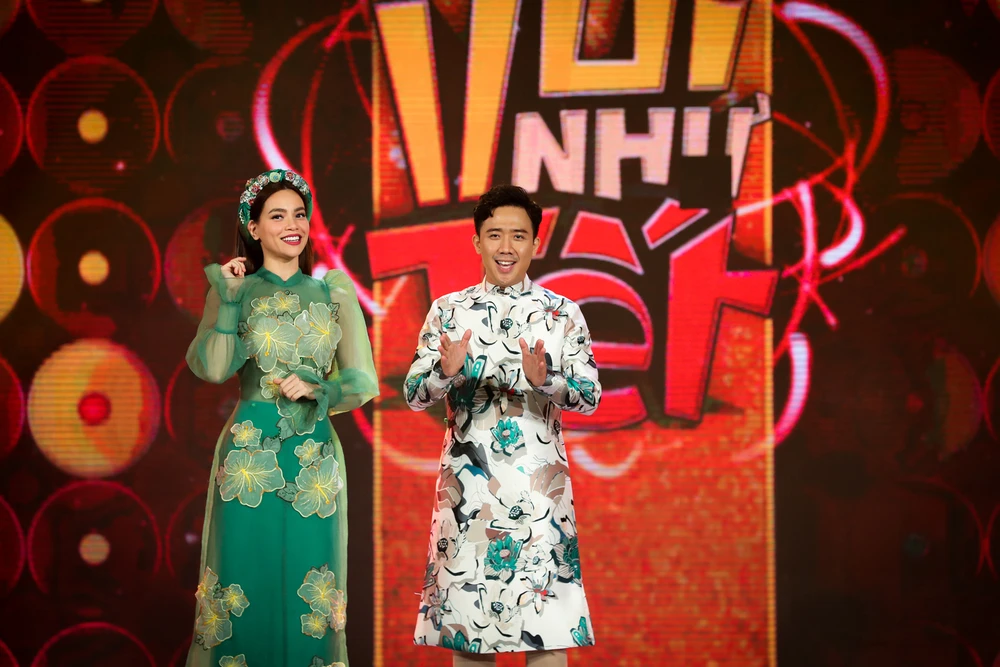 Bộ đôi Hồ Ngọc Hà - Trấn Thành trở lại, mặc áo dài rực rỡ dẫn chương trình Tết