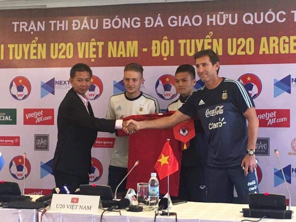 + HLV Claudio Ubeda (U-20 Argentina): Hai trận tại Việt Nam là rất quan trọng là bước cuối cùng chuẩn bị cho giải đấu World Cup. Trước giải chúng tôi cũng có theo dõi U-20 Việt Nam và họ thi đấu rất thành công, không phải vô cớ mà Việt Nam có mặt tại World Cup. Trước khi đến Việt Nam thì chúng tôi có dự giải vô địch U-20 Nam Mỹ. Argentina có sáu lần vô địch thế giới, nhưng điều đó không phải là áp lực mà là niềm tự hào để chúng tôi phấn đấu.