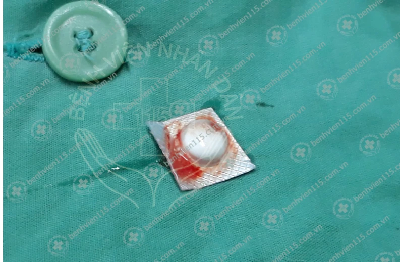 Các BS quyết định nội soi phế quản và tìm thấy viên thuốc chưa bóc vỏ nằm ở phế quản. Sau khi gắp viên thuốc ra ngoài, ông P. không còn chảy máu, hết ho và rát cổ một chút.