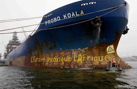 Probo Koala đã xả hàng trăm tấn thải gây ảnh hưởng sức khỏe người dân Bờ Biển Ngà. Ảnh: GREENPEACE
