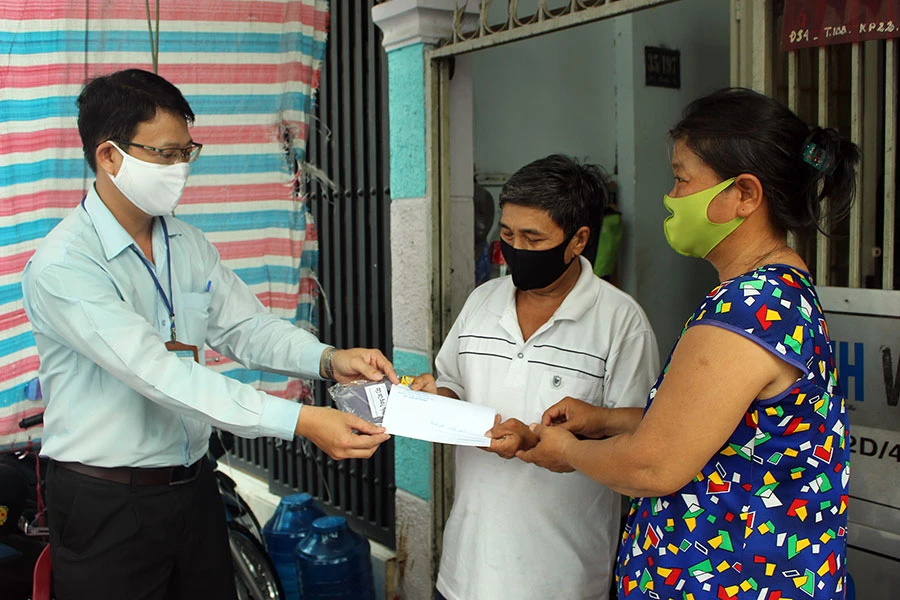 UBND phường Bình Hưng Hòa A, quận Bình Tân trao tiền hỗ trợ cho