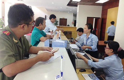 Người nộp thuế cầm tiền mặt đi nộp tại kho bạc nhà nước. Nếu đăng ký nộp thuế điện tử thì có thể ngồi tại nhà, lên mạng để nộp mà không cần cầm tiền mặt đi nộp như vậy. Ảnh: QUỲNH NHƯ