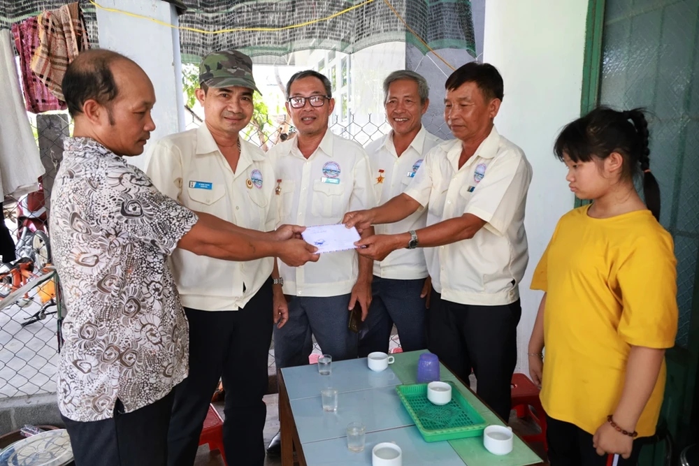 Ngày 17-6, Ban liên lạc truyền thống (BLL) cựu chiến binh Trường Sa TP Cam Ranh (Khánh Hòa), đã đến thăm và trao 13 triệu 350 nghìn đồng cho gia đình cựu binh Trường Sa - Hoàng Thái Long (43 tuổi), ở Cam Hải Tây, huyện Cam Lâm.