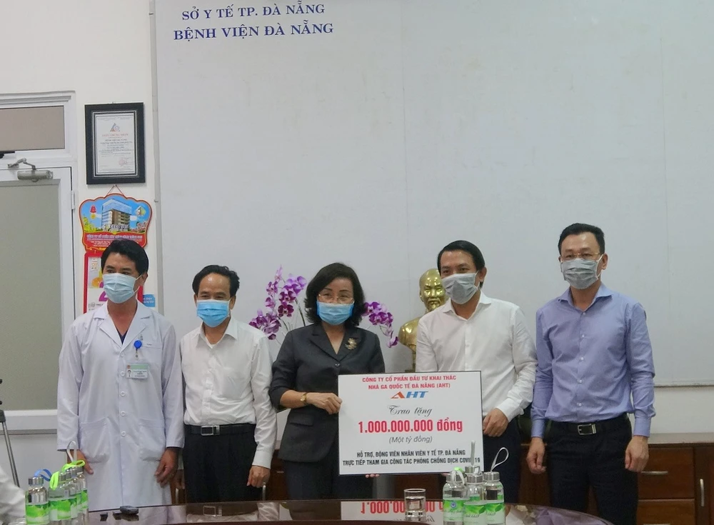 Tại BV Đà Nẵng, Công ty CP Đầu tư khai thác nhà ga quốc tế Đà Nẵng đã trao tặng 1 tỉ đồng hỗ trợ, động viên các nhân viên y tế TP tham gia trực tiếp công tác phòng, chống dịch COVID-19.